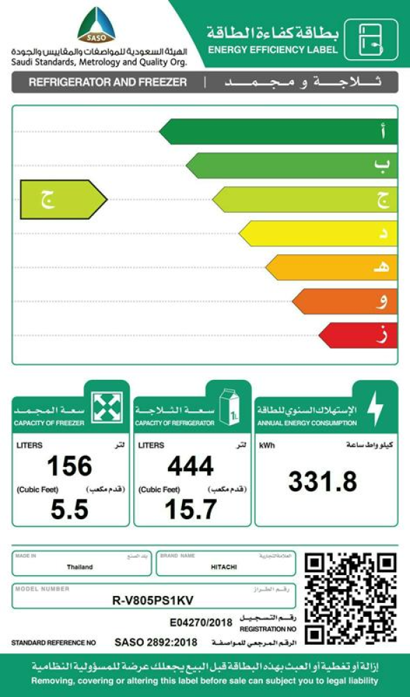 فئة كفاءة الطاقة : ج