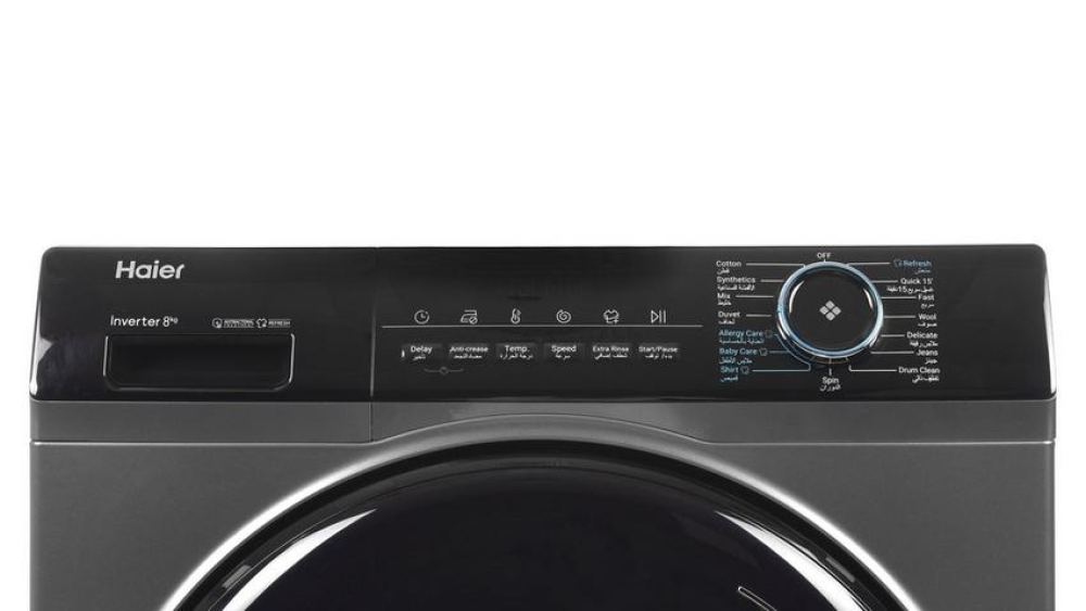 غسالة هاير امامي 8 كجم تجفيف 75% انفرتر فضي