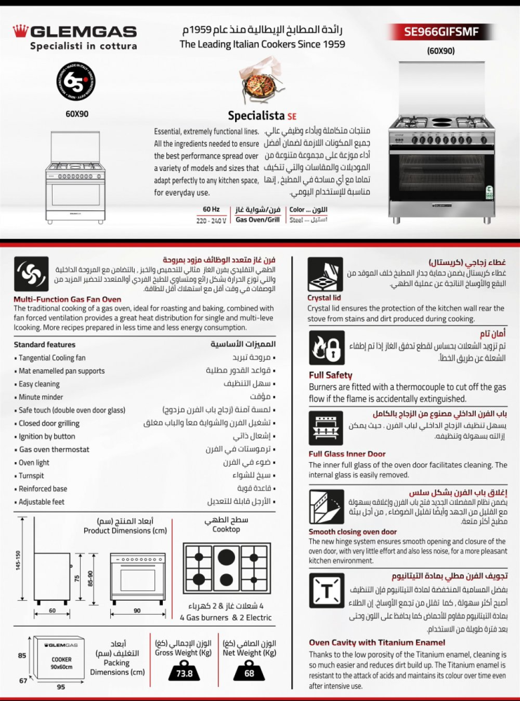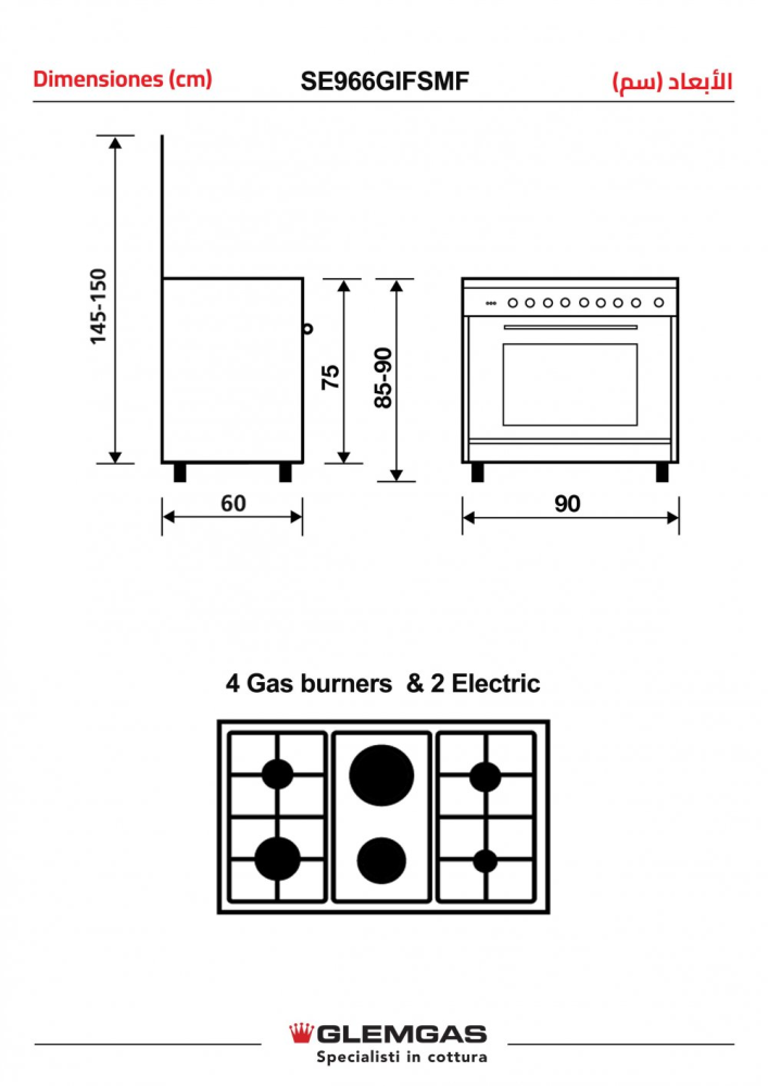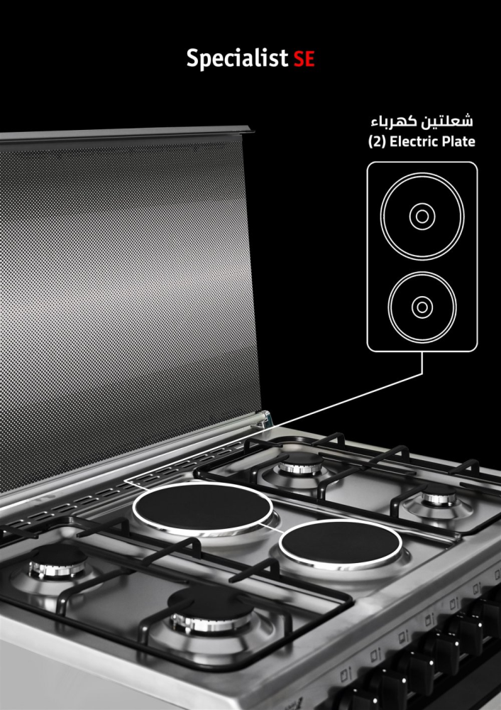 - عدد الشعلات : 4 شعلات غاز , 2 شعلات كهرباء حجر