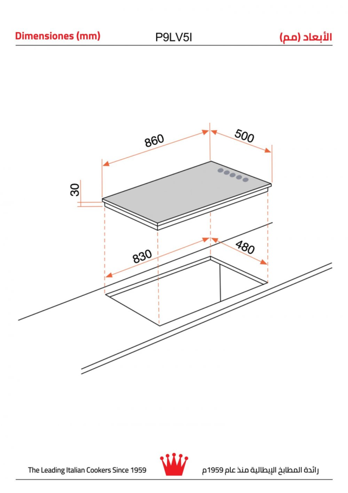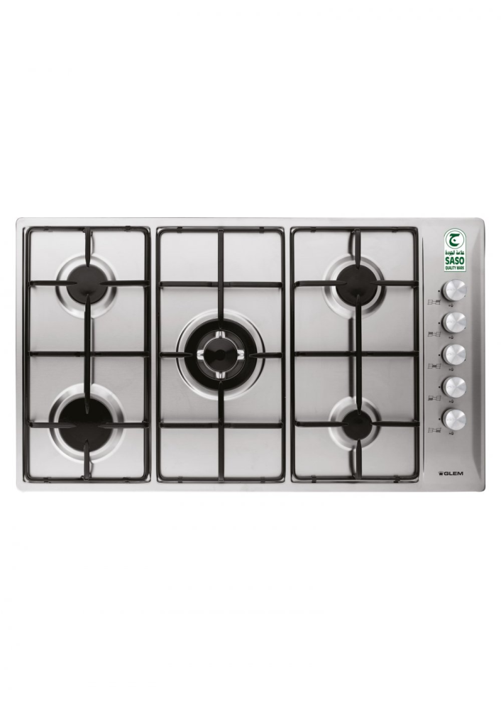 سطح جليم غاز بلت ان غاز (86) سم ، (5) شعلات ، مفاتيح التحكم جانبية - أستيل