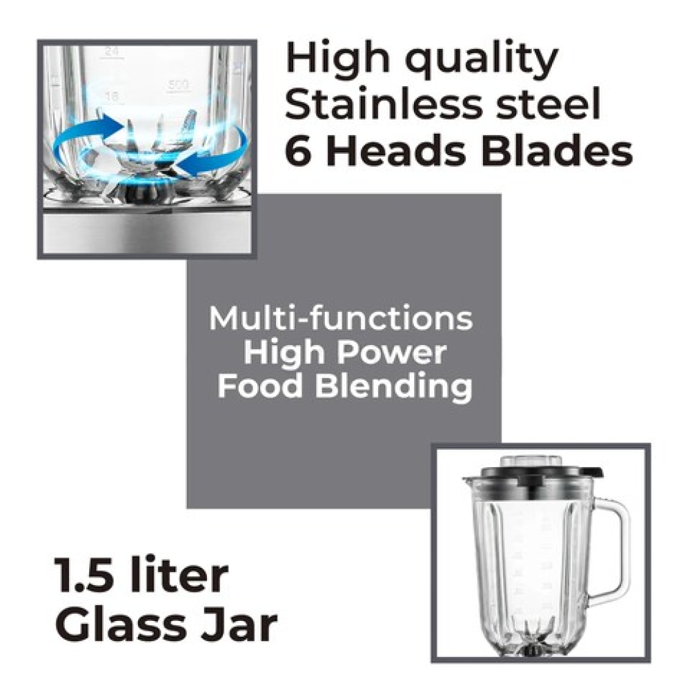 * مزود بمحرك قوي بقدرة 1000 واط، يعالج خلاط مولر الزجاجي المهام المختلفة بسهولة. سواء كنت بحاجة إلى سحق الثلج، أو تحضير العصائر، أو هرس الشوربة، فإنه يقدم أداءً استثنائيًا بسرعة ودقة. الكوب الزجاجي بسعة 1.5 لتر مثالي لتحضير كميات كبيرة من المشروبات والأطباق المفضلة لديك، مما يجعله مناسبًا للعائلات. * ثلاثة برامج تلقائية: سحق الثلج، والعصائر، ووضع النبض. هذه الوظائف المسبقة تزيل الحيرة أثناء الخلط وتضمن نتائج مثالية دائمًا. * خمس سرعات متغيرة، يمكنك التحكم الكامل في عملية الخلط، لتحقيق القوام المطلوب لمكوناتك. * تصميم أنيق من الستانلس ستيل: يتميز بهيكل خارجي أنيق مصنوع من الستانلس ستيل، يضفي لمسة من الرقي على مطبخك ويضمن المتانة والأداء طويل الأمد. * وعاء زجاجي بسعة 1.5 لتر: يأتي مع وعاء زجاجي بسعة 1.5 لتر، مثالي لتحضير كميات كبيرة من المشروبات المفضلة لديك والشوربات، لتلبية احتياجات العائلة والضيوف. * خلاط متعدد الاستخدامات: مصمم للتعامل مع مجموعة متنوعة من المكونات، من الفواكه والخضروات إلى الأطعمة الجافة، ليصبح رفيقك المثالي في المطبخ.