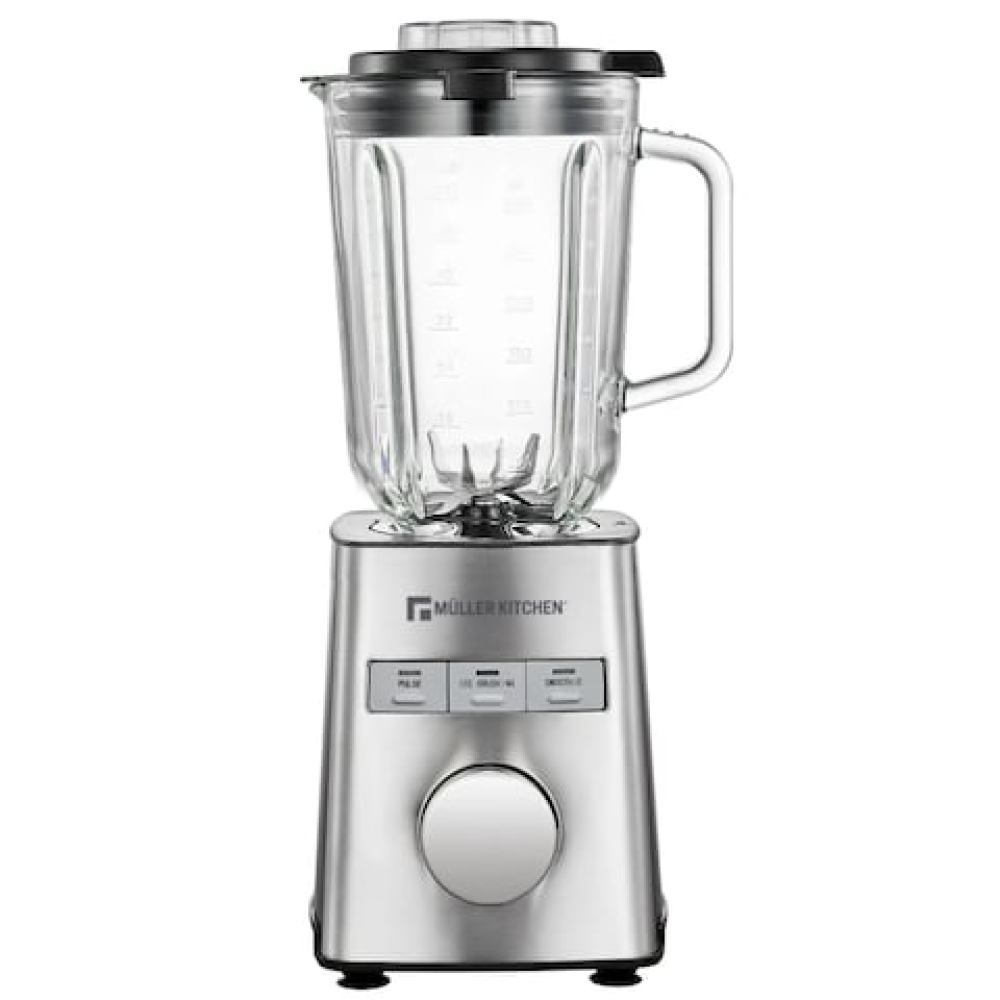 مولر كيتشن خلاط كهربائي، 5 سرعات، وعاء زجاجي سعة 1.5 لتر، 1000 واط، لون فضي